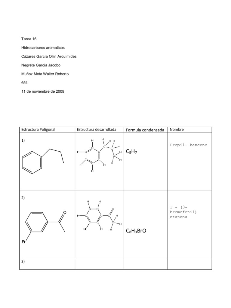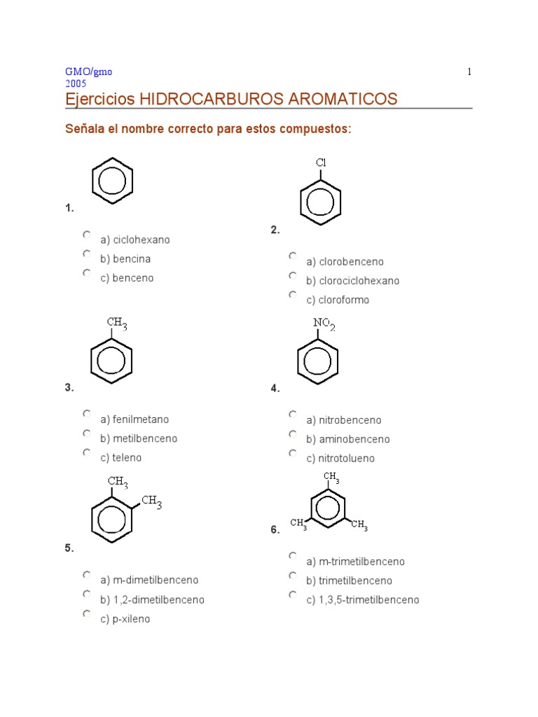 Ejercicios Benceno 1 Docx Pdf Txt